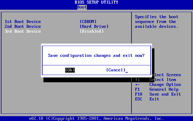 | 5. | Drücken Sie die Taste F10 um zu speichern und bestätigen Sie das Speichern der Konfiguration mit der Eingabetaste.